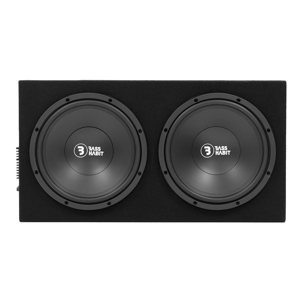 Compact dual 12″ active sub box with built-in amp, solid output, and just the right features.